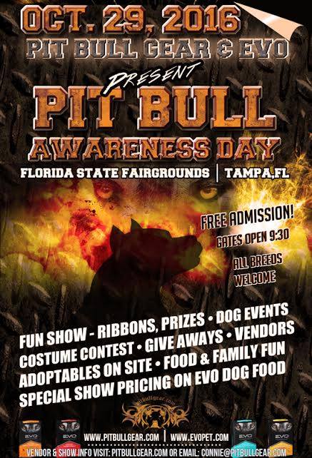 Come celebrate the “Pit Bull” at Florida’s Biggest Annual Pit Bull Event – Pit Bull Gear’s 10th Annual Pit Bull Awareness Day at the Florida State Fairgrounds in Tampa, FL on Oct. 29, 2016